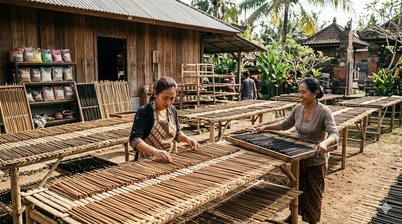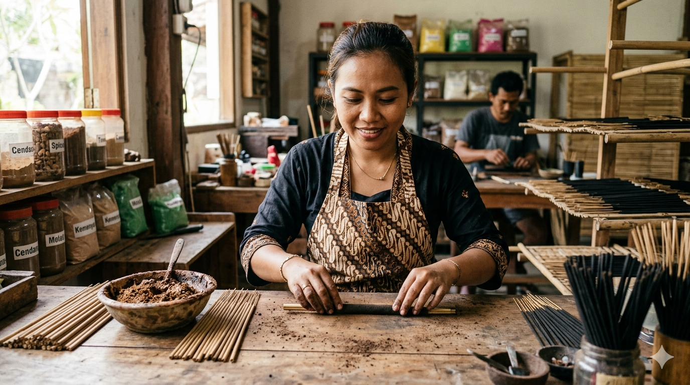 Kami adalah UMKM lokal Bali yang bergerak dalam produksi dupa tradisional berkualitas tinggi yang dibuat secara handmade oleh pengrajin lokal berpengalaman. Setiap dupa diproduksi menggunakan bahan alami pilihan dengan proses yang tetap menjaga nilai budaya dan spiritualitas Bali.